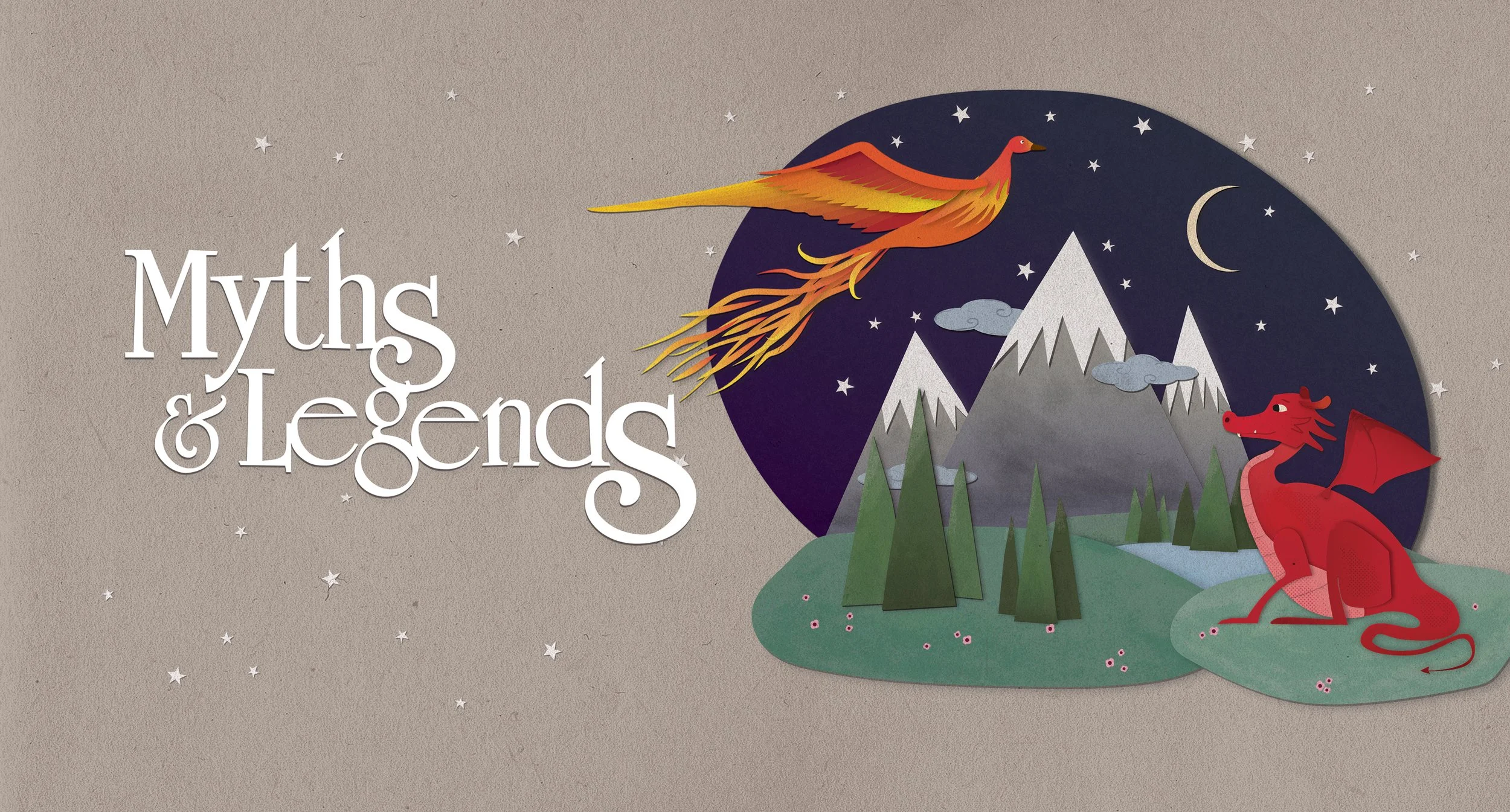 BBC National Orchestra of Wales requested a hero image for a concert aimed at Key Stage 2 students. The brief was the feature creatures and aspects of Welsh Mythology. The direction for the illustrations was to make something with a handcrafted and whimsical quality. Something that can capture the imagination. The original concepts were physically handrawn but colour, texture, assembly etc were done digitally.